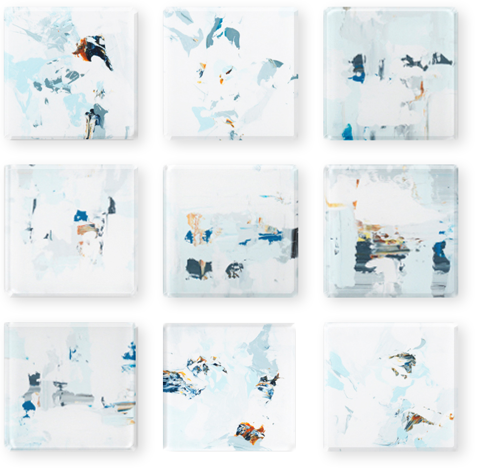 Vetro 0424-05 Archive Mixed medium under glass 16"h × 16"w × 9 pieces Shipped 7/24 Sold,a,c,d,e,g,h/b,f,i Sold