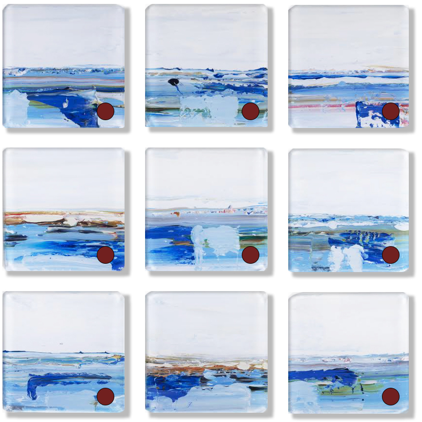 Vetro 1221-03 Archive Mixed medium under glass 16"h × 16"w × 9 pieces JS,sold,d/b/g,a(22) shipped toJP,c,e,f,i,h Sold